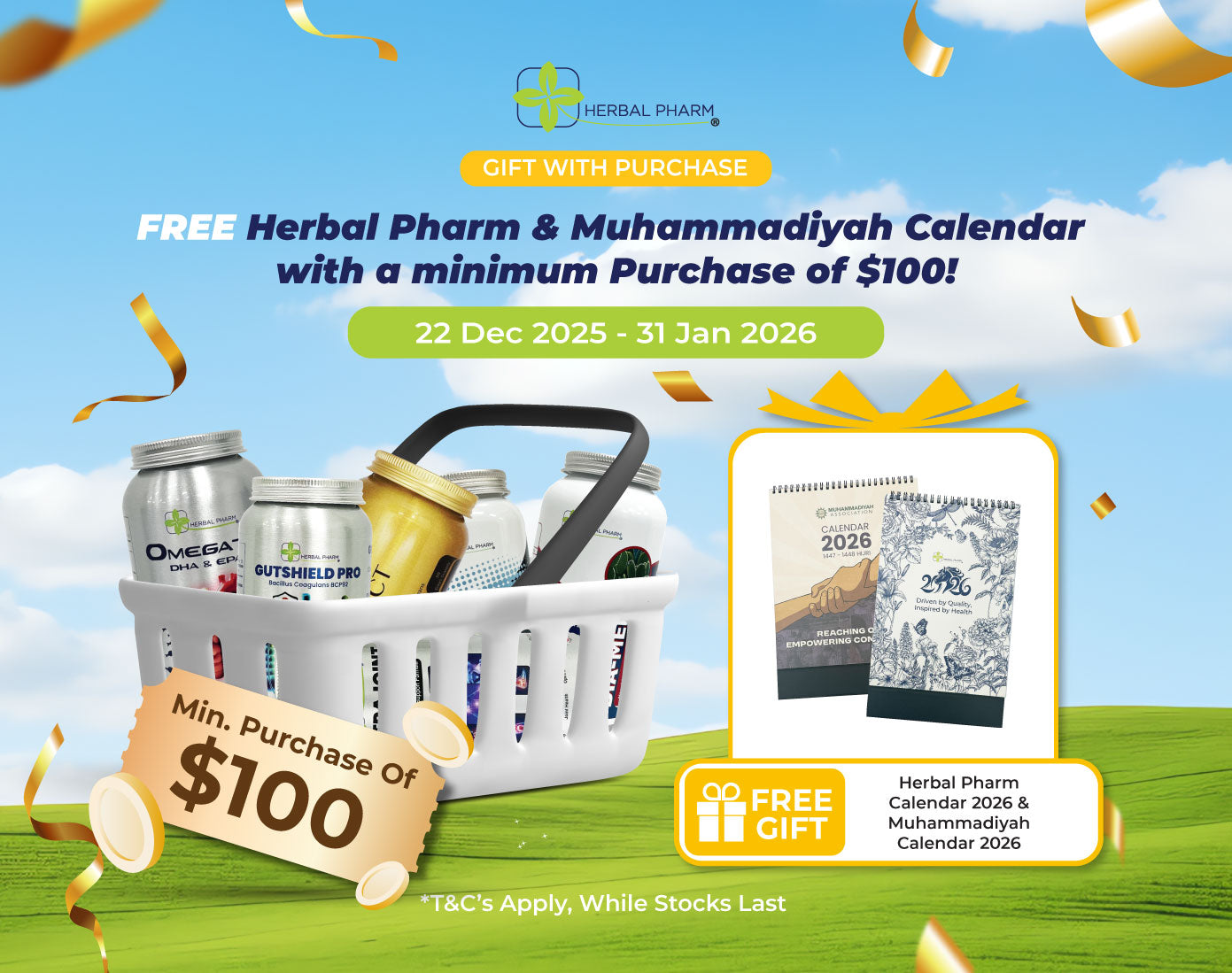 Receive a FREE Herbal Pharm & Muhammadiyah 2026 Calendar with a minimum spend of $100!
