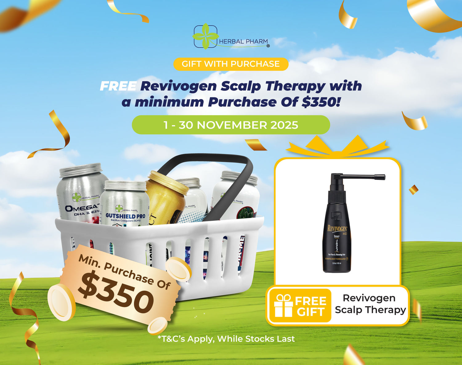Spend a minimum of $350 in a single receipt and receive a FREE bottle of Revivogen Scalp Therapy — our premium solution for healthier, fuller-looking hair!
