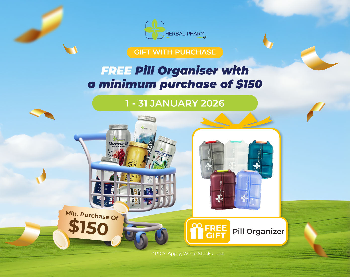 Receive a FREE Pill Organiser with a minimum spend of $150!