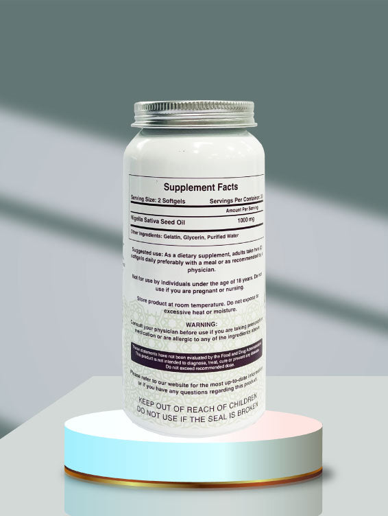 Each serving (2 softgels) contains Black Seed Oil (Nigella sativa) 1000 mg.