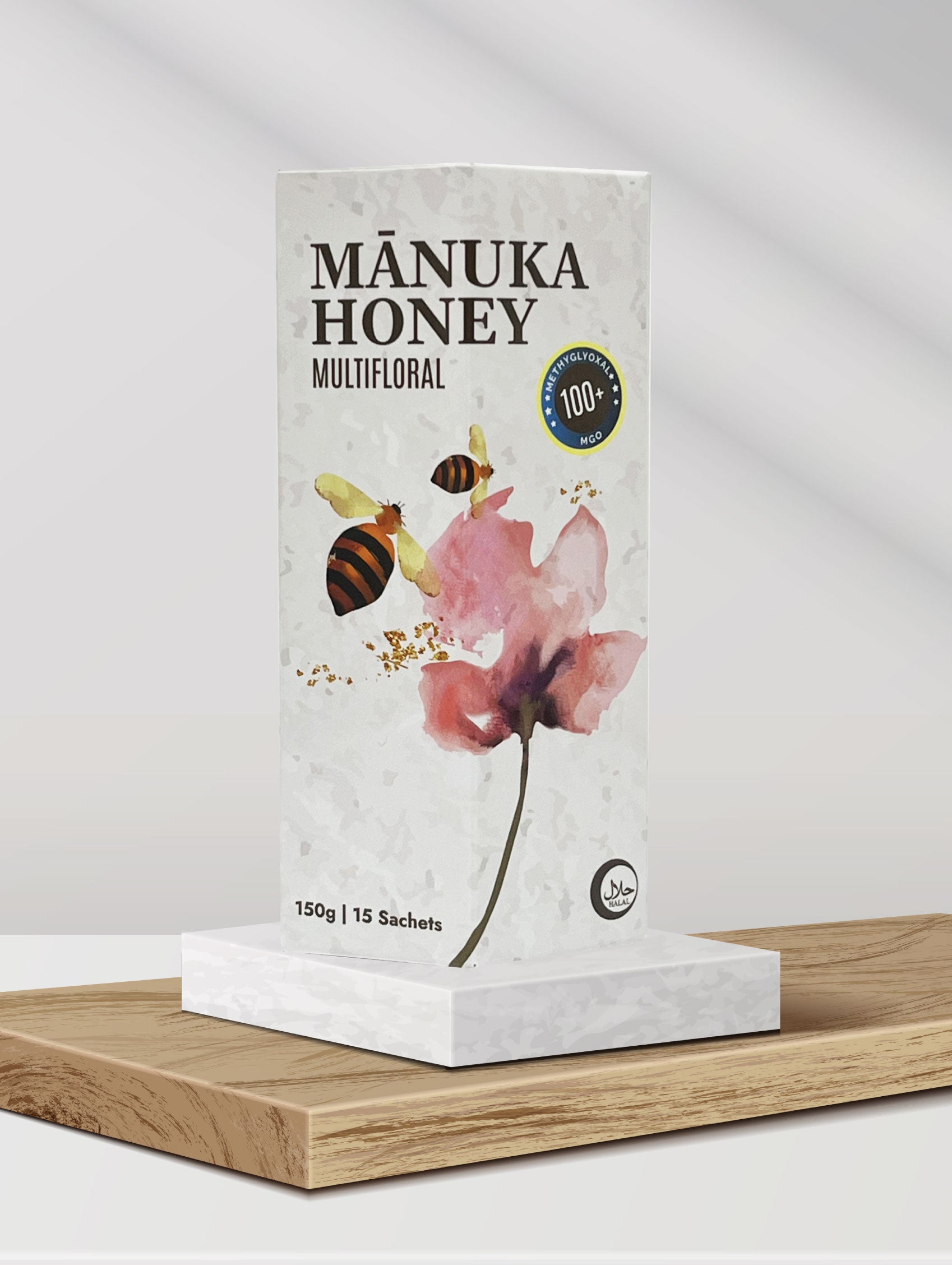 Enjoy the benefits of premium Manuka Honey anytime, anywhere with our convenient sachets. Each pack contains authentic New Zealand Manuka Honey with MGO 100+, delivering natural antibacterial support and daily wellness in a mess-free, travel-friendly format.